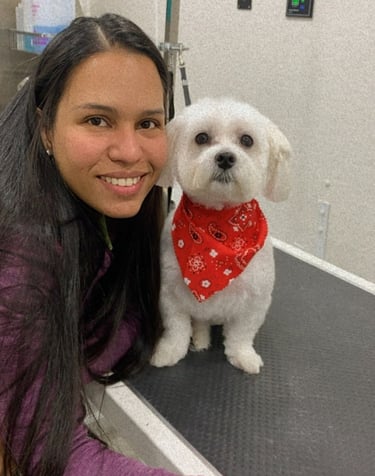 With over 13 years of experience in professional pet grooming, Virginia has worked with dogs of all breeds, sizes, and temperaments. She is certified in Canine and Feline CPR and First Aid for Grooming Professionals, ensuring every pet receives safe and responsible care.